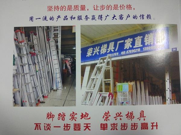 成都荣兴铝梯厂是国内设计研发和制造各种铝合金梯具及绝缘梯具的专业生产企业。我们拥有多名高技术人员,不但在梯具的开发和设计方面处于国内地位,而且长期对国外尤其是欧美的梯具有着深入的研究,始终与先进的制梯业保持同步水平。至今,公司已有二十多年的生产、销售历史,产品遍及国内各个省份,并出口至欧洲、南美洲、中东等世界多个和地区。 我们的产品包括铝合金梯系列,绝缘梯系列及铁梯系列三大类几十个品种,广泛应用于家庭、企事业单位、建筑工矿及电力部门等各个领域。我们是国内一家按照欧洲CE标准及德国GS标准生产梯具的厂商,产品质量值得信赖。 主营:成都梯具|人字梯|升降梯|;不锈钢梯|折叠梯|家用梯;升降平台|液压升降平台